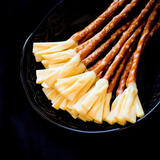 - Étape 5 : Finition et présentation Répétez les étapes 3 et 4 pour tous les morceaux de fromage et les bâtonnets de bretzels restants. Disposez les balais de sorcière sur un plat de service ou une assiette. Vous pouvez les servir immédiatement ou les conserver au réfrigérateur jusqu’au moment de les déguster. Pour une présentation plus festive, vous pouvez ajouter quelques confettis d’Halloween ou des décorations comestibles.