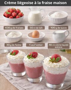 Fraîche, onctueuse et intensément fruitée, la crème liégeoise à la fraise est un dessert gourmand qui séduit par sa douceur et sa légèreté. Facile à réaliser, elle allie une crème …