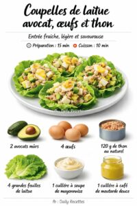 Fraîches, légères et pleines de saveurs, ces coupelles de laitue garnies d’avocat, d’œufs durs et de thon sont idéales pour une entrée rapide ou un repas léger. Leur présentation élégante …