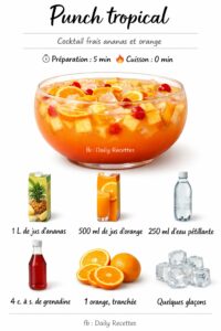 Frais, coloré et délicieusement fruité, ce punch tropical est la boisson idéale pour les journées ensoleillées ou les moments de convivialité. Facile et rapide à préparer, il séduit par son …