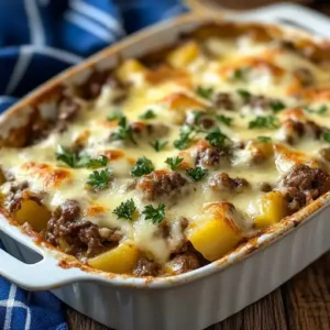 Description de cette recette : La casserole crémeuse de bœuf haché et pommes de terre est un plat réconfortant et familial, parfait pour les soirées fraîches ou les repas dominicaux. …