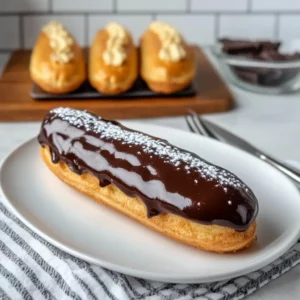 Description de cette recette L’éclair au chocolat, un classique indémodable de la pâtisserie française, est une gourmandise qui traverse les générations sans jamais perdre de son attrait. Composé d’une pâte …