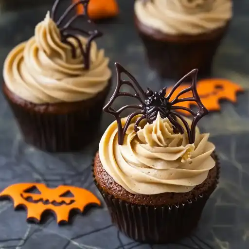 Ces cupcakes toile d’araignée d’Halloween sont une gâterie délicieusement effrayante, parfaite pour les fêtes d’Halloween, les goûters ou simplement pour surprendre vos proches. Combinant la richesse du chocolat, la fraîcheur de l’orange et la gourmandise du praliné, ces petits gâteaux sont aussi beaux que bons. Chaque cupcake est surmonté d’une toile d’araignée en chocolat, faite à la main, avec une petite araignée de café et de réglisse, créant un effet visuel saisissant et amusant.