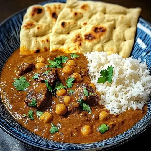 Ce curry de bœuf est parfait servi avec du riz basmati, du naan à l’ail et une salade verte fraîche. Vous pouvez également l’accompagner de chutney de mangue ou de raita (sauce au yaourt et au concombre) pour une touche de fraîcheur.