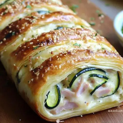 Un délicieux et facile feuilleté, parfait pour un déjeuner rapide, un pique-nique ou un dîner léger. Cette recette combine la douceur des courgettes, le fondant de la mozzarella et la saveur du jambon, le tout enveloppé dans une pâte feuilletée croustillante.