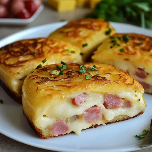Le gâteau de pommes de terre farci au jambon et au fromage est un plat familial généreux, fondant à l’intérieur et croustillant à l’extérieur. Facile à préparer avec des ingrédients simples, il combine la douceur de la purée de pommes de terre avec le goût savoureux du jambon et le fondant du fromage. Parfait pour un repas du soir ou un brunch dominical, ce plat plaît autant aux petits qu’aux grands.