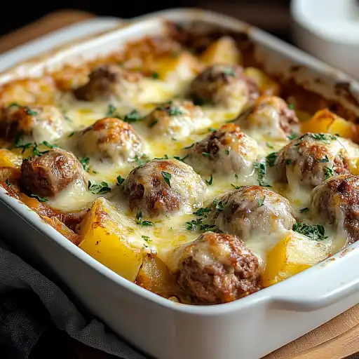 Le gratin de pommes de terre et boulettes de viande est un plat familial réconfortant, parfait pour les soirées fraîches. Il combine la douceur des pommes de terre fondantes avec la saveur riche et épicée des boulettes de viande, le tout gratiné sous une couche de fromage doré et croustillant. C’est un plat complet qui plaira à toute la famille, des plus petits aux plus grands.