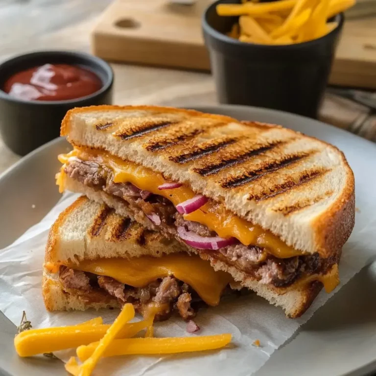Description de cette recette : Le Panini Bœuf & Cheddar est une option de repas rapide, savoureuse et réconfortante, idéale pour un déjeuner sur le pouce ou un dîner décontracté. Ce panini combine la richesse du bœuf rôti, la douceur fondante du cheddar, le piquant de l’oignon rouge et la saveur fumée de la sauce barbecue, le tout pressé entre deux tranches de pain croustillant. C’est un plat simple à préparer, mais qui offre une explosion de saveurs à chaque bouchée.