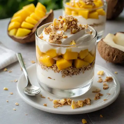Le Parfait Mangue & Coco est bien plus qu’une simple recette, c’est une invitation à la créativité et à la gourmandise. Facile, rapide et personnalisable, il s’adapte à toutes vos envies et à tous les moments de la journée. Alors, n’hésitez plus, laissez-vous tenter par cette explosion de saveurs tropicales et faites voyager vos papilles! Que ce soit pour un petit-déjeuner énergisant, un dessert léger ou une collation saine, ce parfait deviendra rapidement un incontournable de votre cuisine. Avec sa texture crémeuse, son croquant irrésistible et son goût exotique, il est la promesse d’un moment de pur plaisir gustatif. Alors, à vos cuillères et régalez-vous!