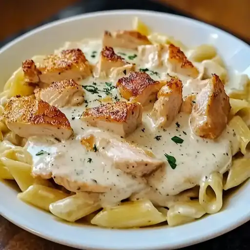 Étape 9: Servez immédiatement votre plat de pâtes au poulet et sauce crémeuse au Boursin, garni de persil frais haché et de parmesan râpé, si désiré.