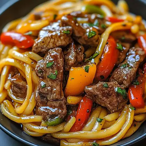 Les pâtes au steak et au poivron grésillantes sont un plat savoureux et réconfortant, parfait pour un dîner rapide en semaine ou un déjeuner gourmand. Cette recette combine la tendreté du steak mariné, la douceur des poivrons caramélisés et la générosité des pâtes, le tout relevé par des épices parfumées. C’est un plat simple à réaliser, qui ne nécessite pas de compétences culinaires particulières et qui peut être adapté selon vos goûts et les ingrédients disponibles.
