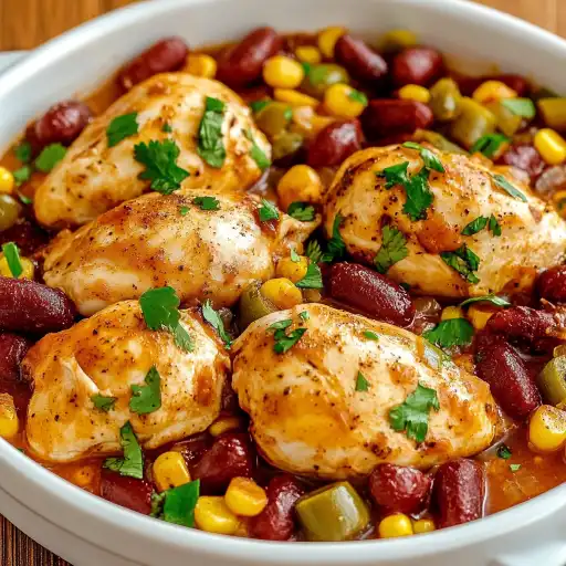 Le poulet Tex-Mex au four est un plat convivial, savoureux et facile à préparer, parfait pour un repas de semaine réconfortant ou un dîner entre amis. Inspiré des saveurs du Sud-Ouest américain et de la cuisine mexicaine, ce plat combine des filets de poulet tendres avec une sauce tomate épicée, du maïs, des haricots rouges et une touche de piment pour relever le tout. La cuisson au four permet de conserver l’humidité du poulet tout en laissant les saveurs se mélanger et s’intensifier.