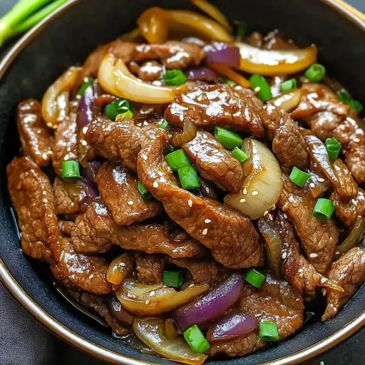 Vous allez adorer ce sauté de bœuf et d’oignons chinois pour plusieurs raisons. Tout d’abord, sa simplicité : la recette est facile à suivre et ne nécessite pas d’ingrédients compliqués. Ensuite, son goût : la marinade rend le bœuf incroyablement tendre et savoureux, tandis que les oignons caramélisés ajoutent une douceur délicieuse. La sauce, quant à elle, est un mélange parfait de saveurs umami, salées, sucrées et légèrement acides, qui se marient à merveille avec le bœuf et les oignons. Enfin, sa polyvalence : ce plat peut être servi avec du riz, des nouilles, ou même être utilisé comme garniture pour des sandwichs ou des galettes. C’est un plat qui plaira à toute la famille et qui deviendra rapidement un incontournable de votre répertoire culinaire.