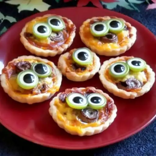 Serving Suggestions: Servez ces tartelettes effrayantes aux yeux tièdes ou froides, en apéritif ou en entrée, lors de votre fête d’Halloween. Elles peuvent également être servies en plat principal, accompagnées d’une salade verte.